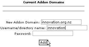 - Enter the domain name in the New Addon Domain field.